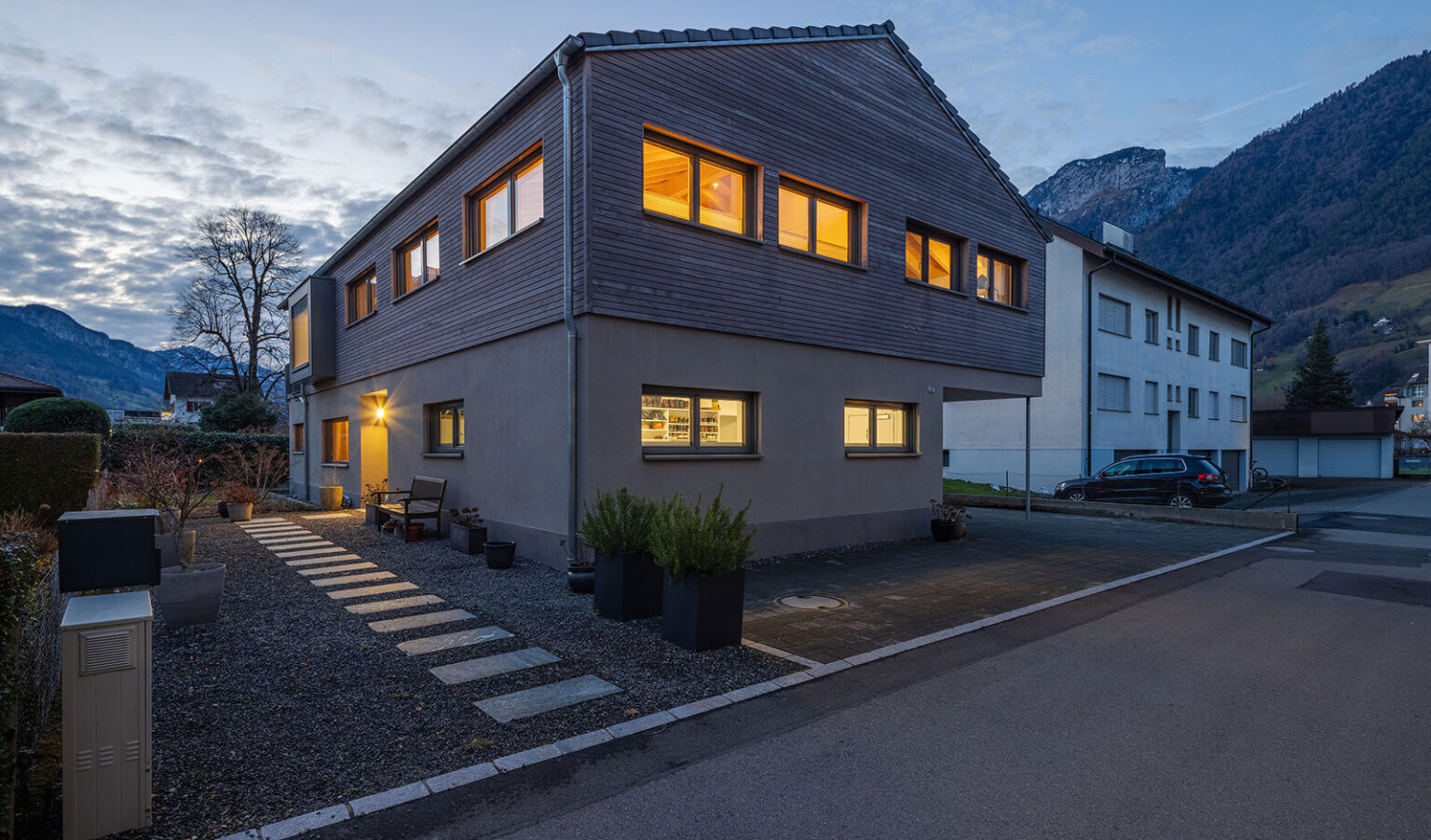 Nur 150 Meter vom Seeufer entfernt steht dieses freistehende Einfamilienhaus aus dem Jahr 2019 – modern, lichtdurchflutet und geprägt von hochwertiger Holzelementbauweise, die ein aussergewöhnlich angenehmes Wohnklima schafft.