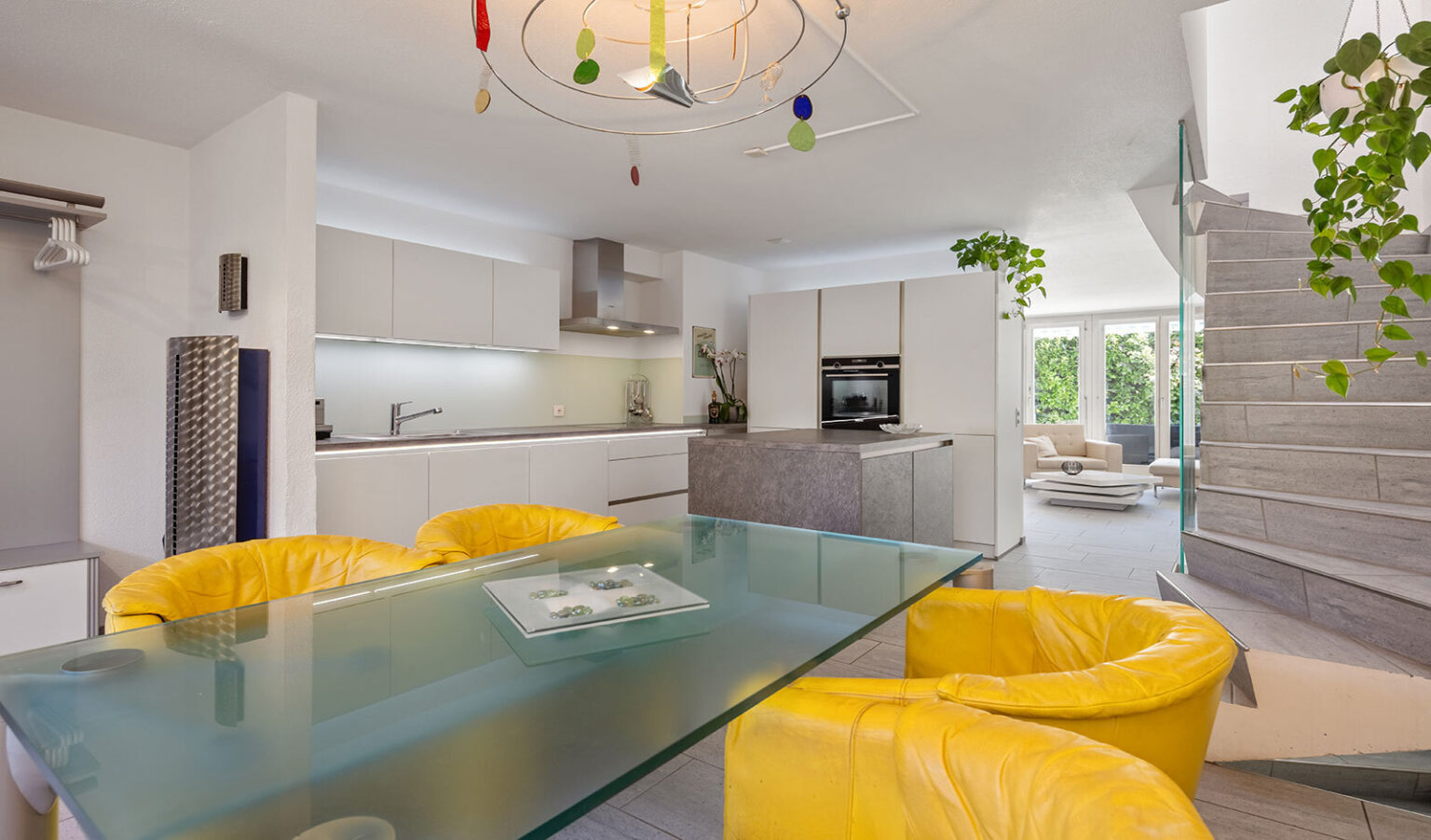 Das Wohngeschoss überzeugt durch seine kompakte Aufteilung in Wohn- und Essbereich. Die Küche wurde 2021 erneuert und mit einer praktischen Kochinsel ausgestattet.