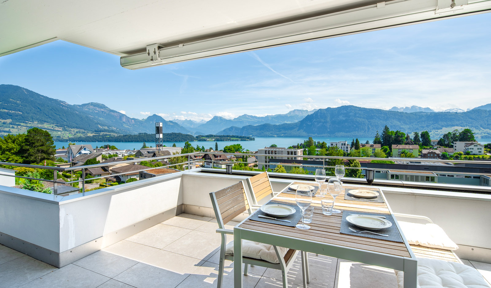 An erhöhter Lage über dem Dorf ist die Lage dieser Wohnung genial. Nahe an den Dienstleistungen, beste und freie Aussicht und doch ruhig in einer Quartierstrasse gelegen. Die südliche Ausrichtung garantiert ganztägige Besonnung und das abfallende Gelände garantiert die unverbaubare Sicht. Zwei Bushaltestellen befinden sich in wenigen Gehminuten und bieten gute Verbindungen nach Luzern. An dieser ausgezeichneten Lage findet man sich in gut situierter Nachbarschaft wieder, was sich bei der Durchfahrt durch die Quartierstrasse beim Anblick der noblen Liegenschaften widerspiegelt.
