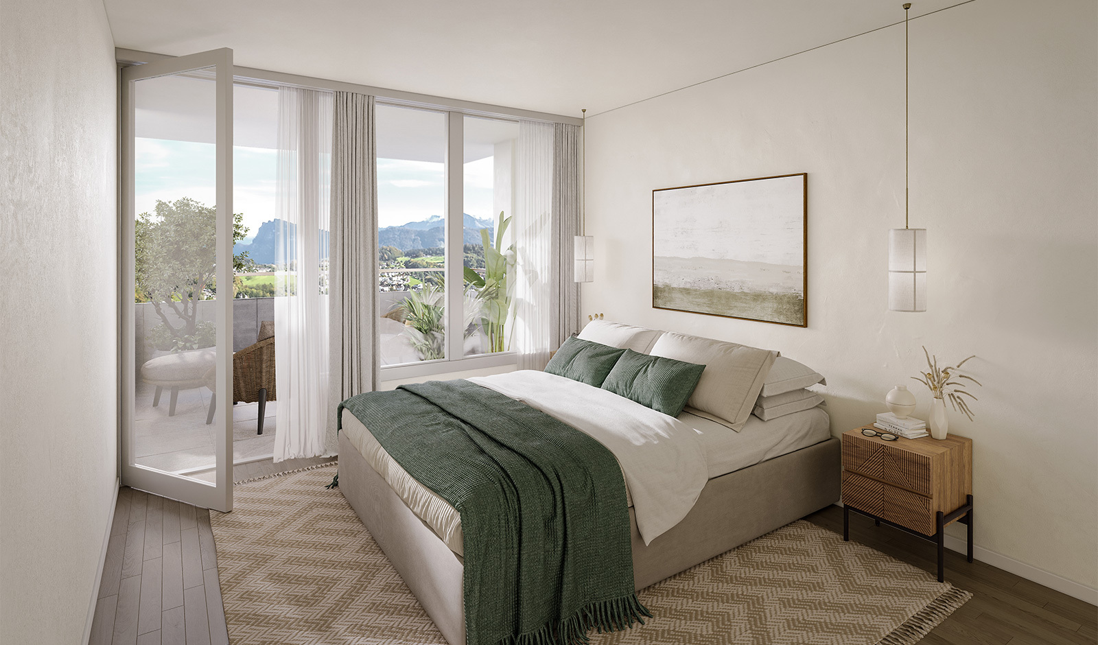 Die 2½-Zimmer-Wohnung besticht durch lichtdurchflutete Räume dank grossen Fensterfronten und eine Aussicht, die atemlos macht. Hochwertiger Eichenparkett, edle Materialien und ein harmonisches Farbkonzept in warmen Erdtönen schaffen ein modernes Ambiente. Hier treffen Design, Eleganz und Wohnkomfort aufeinander, jedes Detail strahlt Raffinesse aus und lädt zum Verweilen ein.