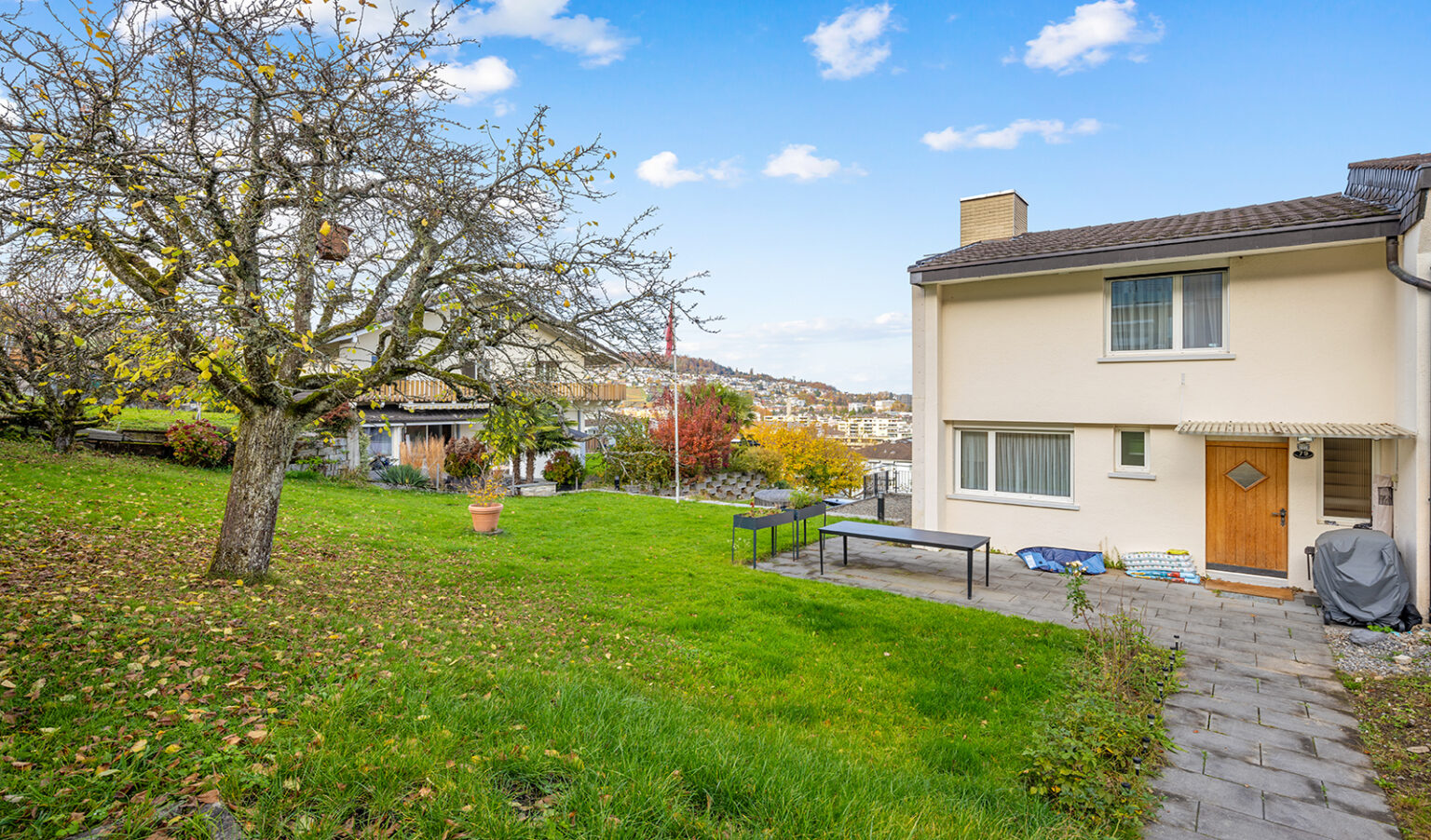 Die erhöhte Hanglage eröffnet eine wunderbare Aussicht über die Dächer von Kriens bis zur Stadt Luzern. Der Aussenbereich besticht durch eine grosszügige Gartenfläche, mehrere Sitzplätze sowie viel Privatsphäre. Hier haben Kinder Platz zum Spielen und Erwachsene Raum zum Entspannen. Feuerwerk zu Neujahr und Bundesfeier geniessen Sie bequem von Ihrem Grundstück aus – ein besonderes Highlight.